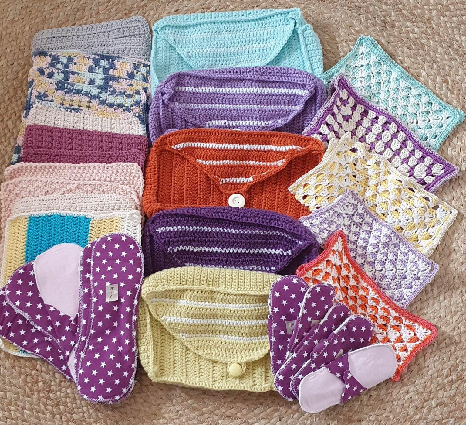 Under april månad har kvinnor runt hela Sverige sytt och virkat tygbindor, tvättlappar, fodral och trosor till förmån för flickors skolgång på Zanzibar.
